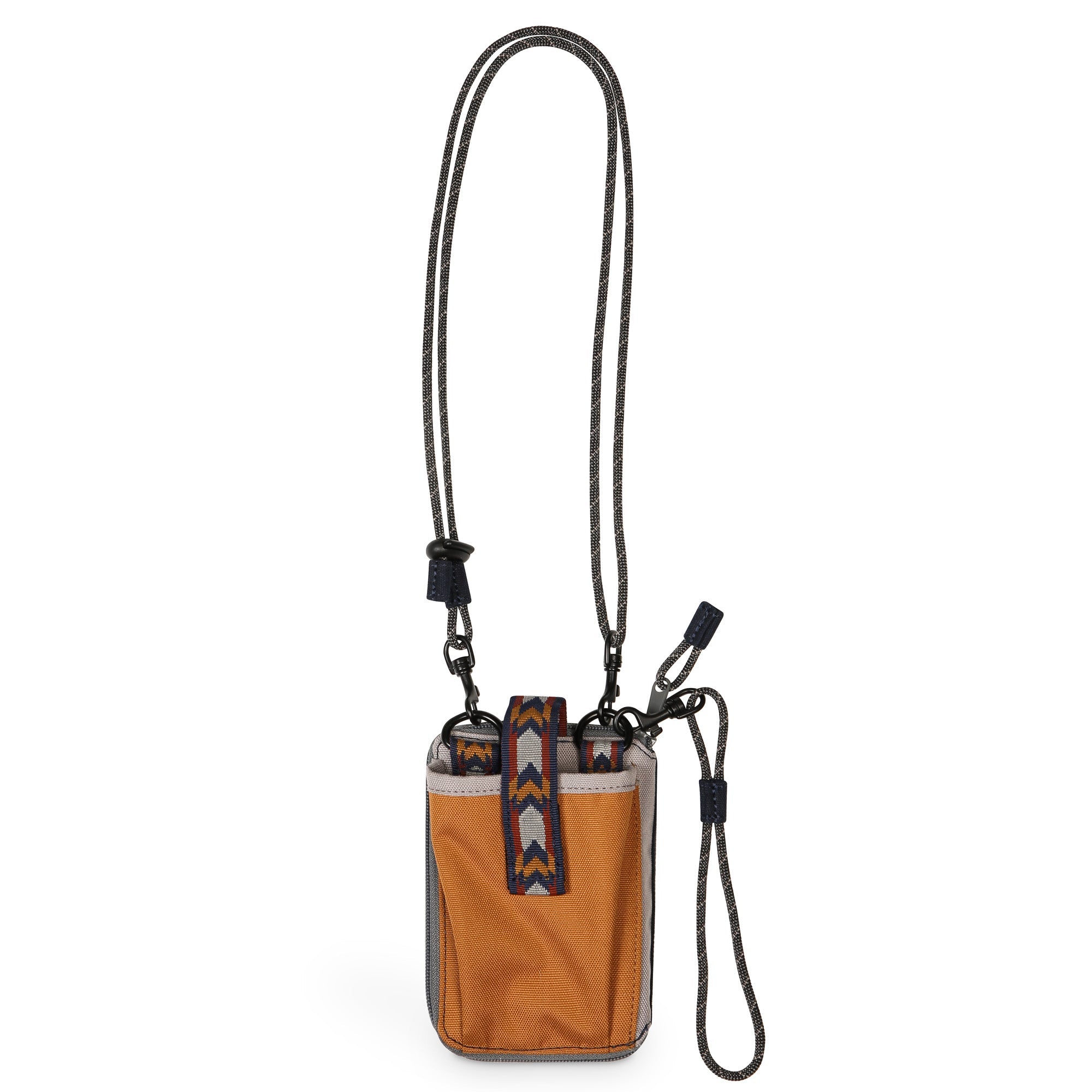 - Cross body full zip wallet case with adjustable and detachable swift rope shoulder strap construction with cord lock cinch