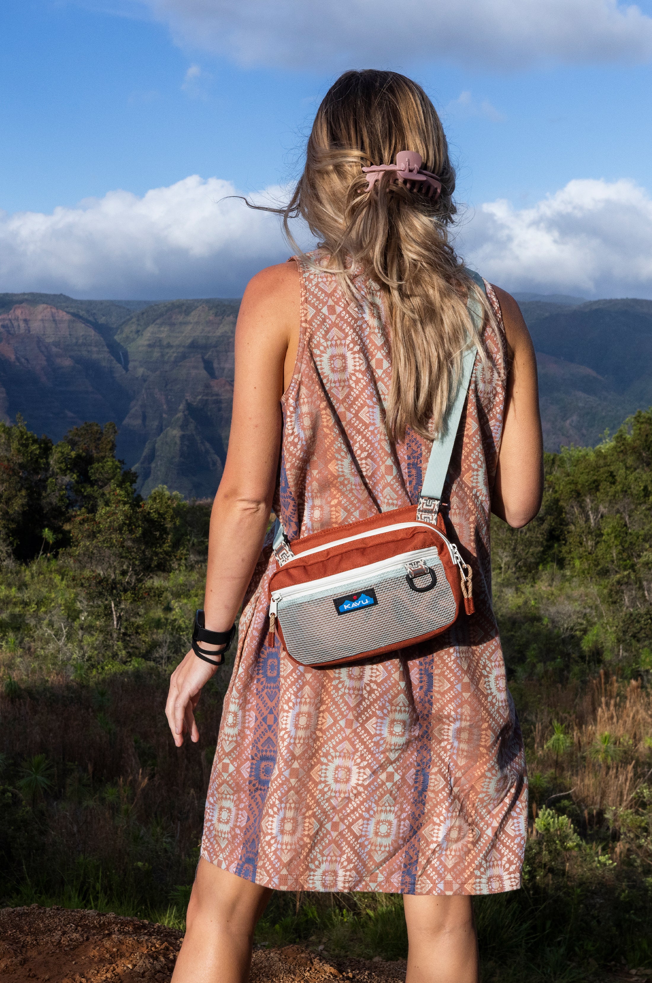 • Cross Body Strap Length: 44" - 50" Dimensions: 5.5” x 9” x 1.5" (1 L / 61 cu in)