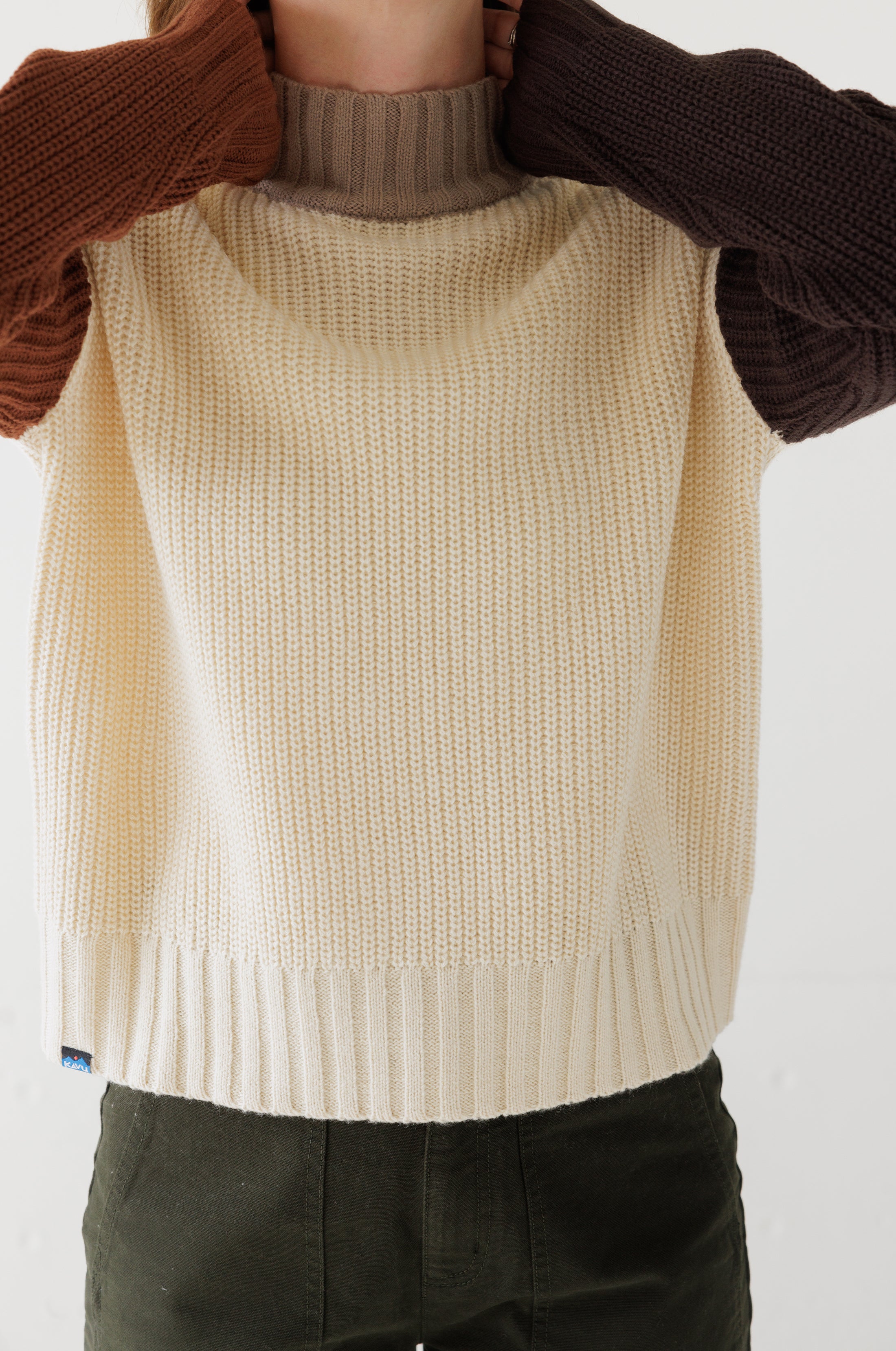 The leaves are falling, your breath has become visible in the cold morning air, and you've transitioned from iced americanos back to hot. It's the time of the season for....sweaters. The Swanford sweater is a cosy hip length pullover turtleneck sweater, in tonal colour blocking that brings to life heritage KAVU vibes to the modern woman.