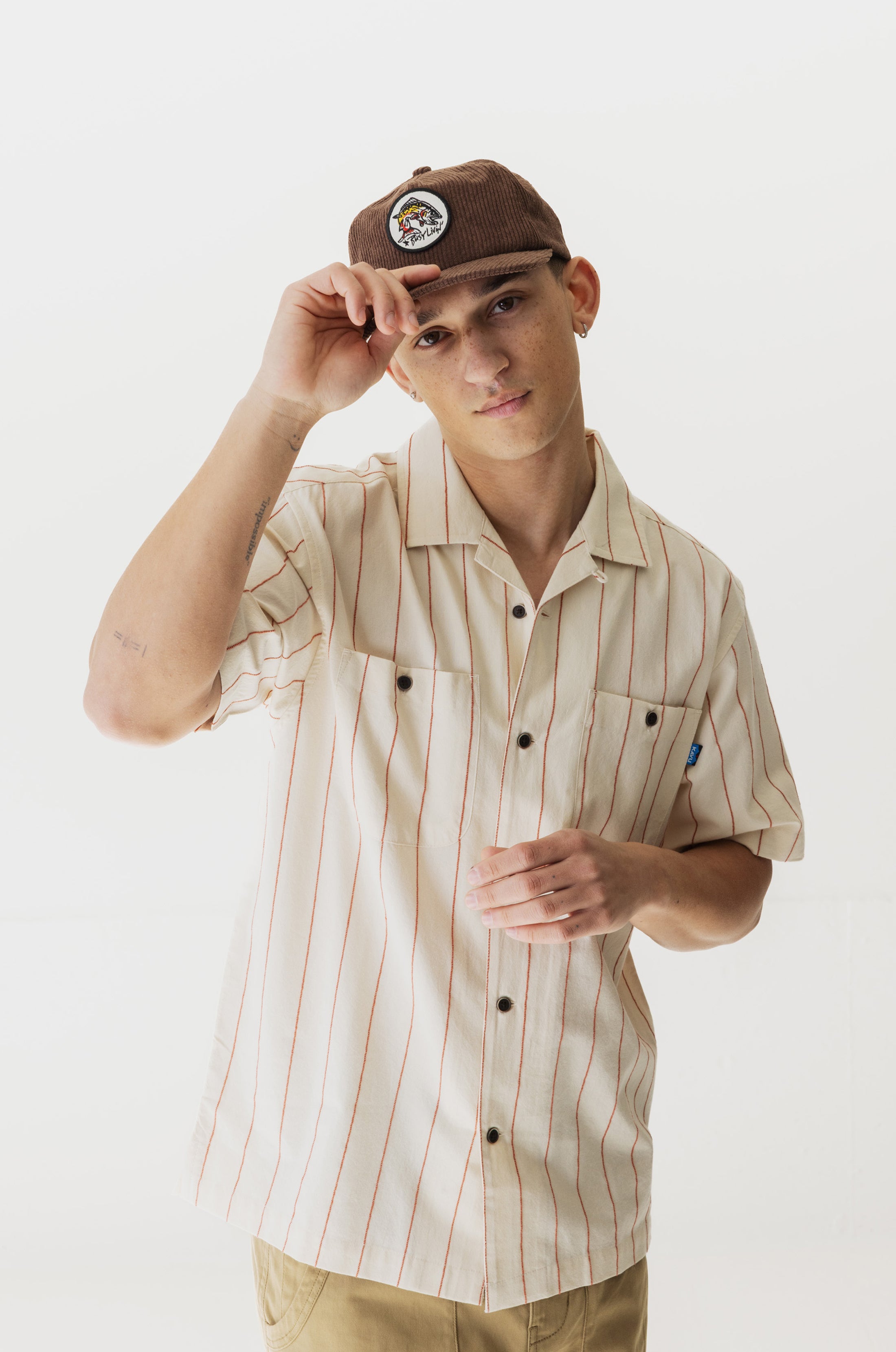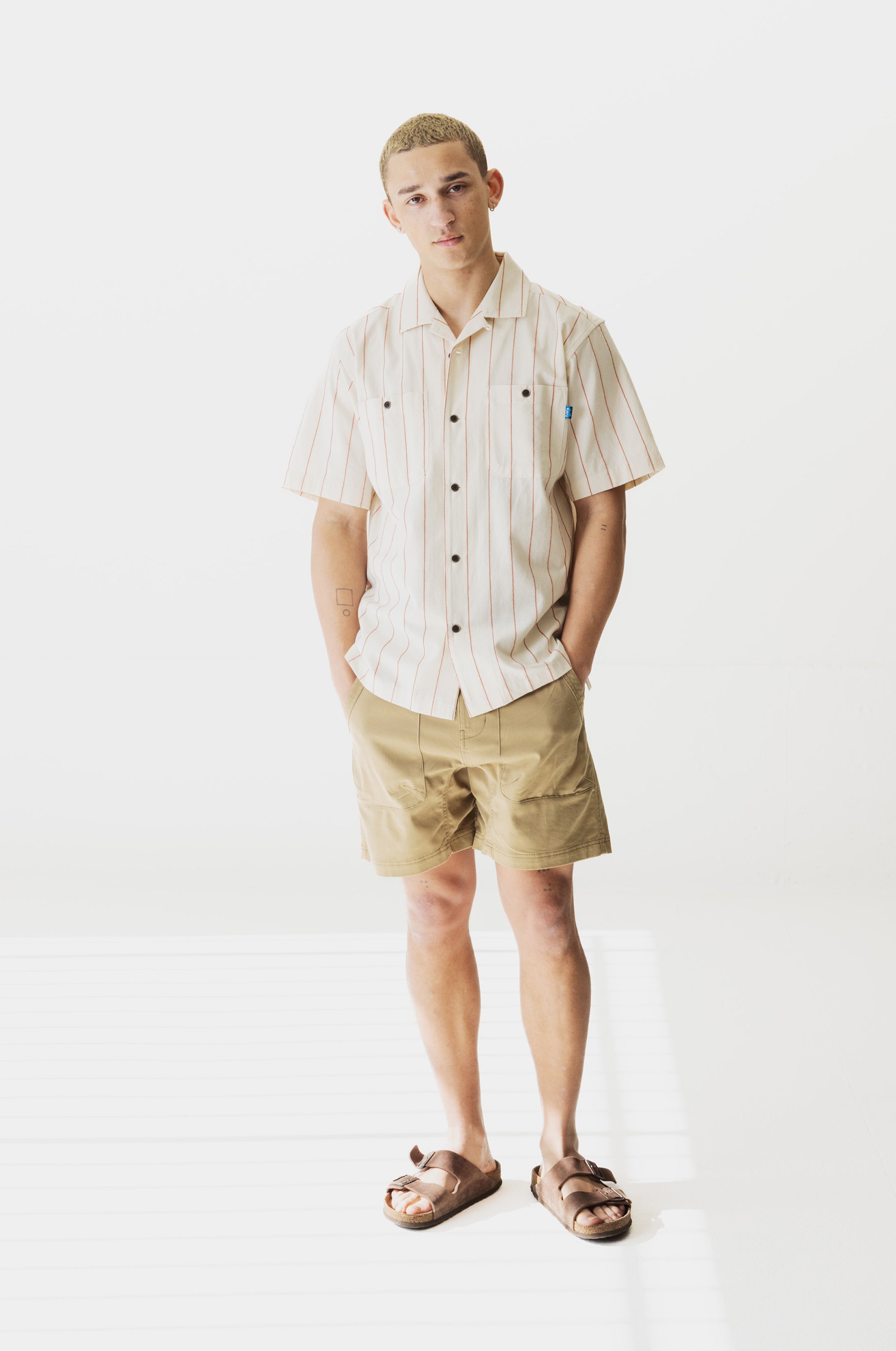 KAVU Island Bound Short Sleeve Shirt (Sand Stripe)