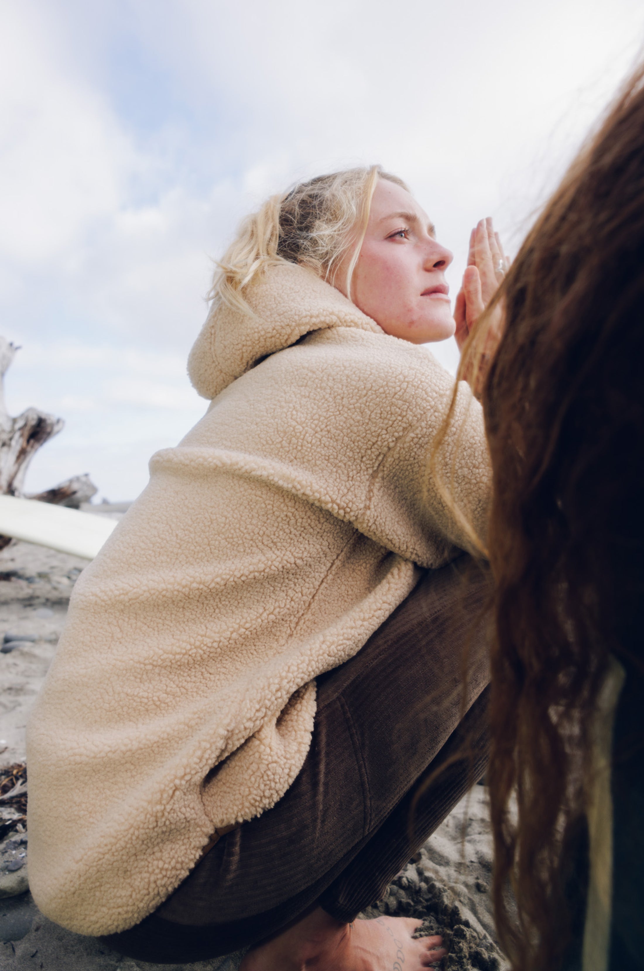 Fabric: 15oz 100% certified recycled polyester high pile sherpa fleece bonded with polar fleece  Accent Fabric: 3oz 100% certified recycled polyester solid matte woven