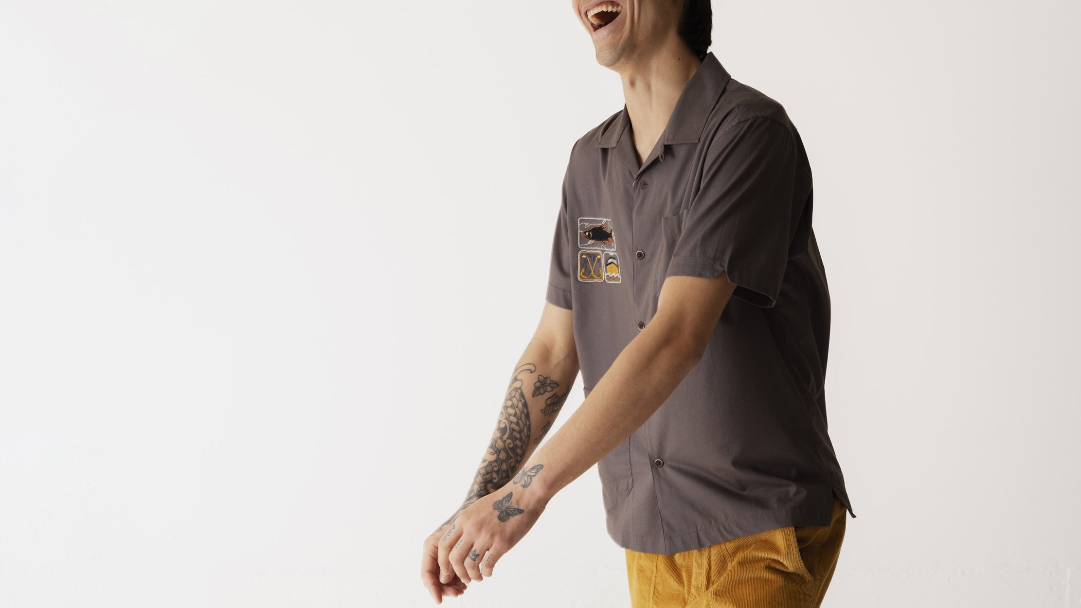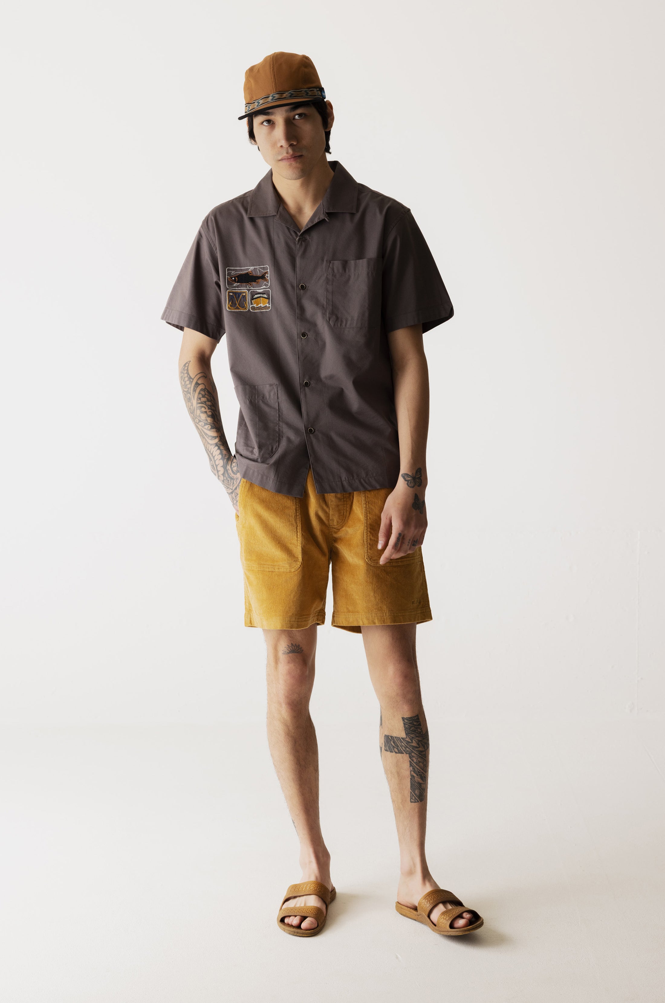 • Short sleeve custom embroidered button up shirt