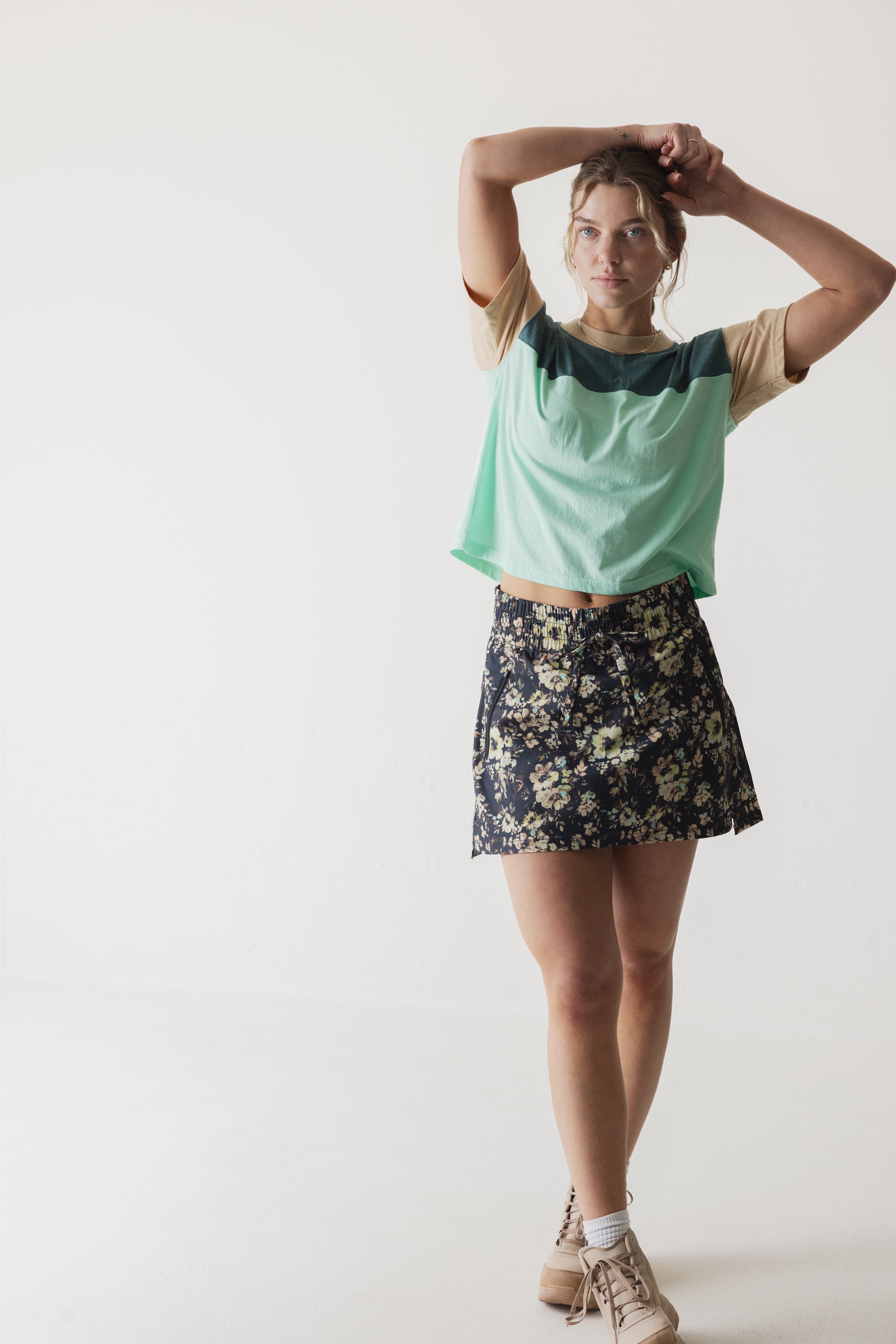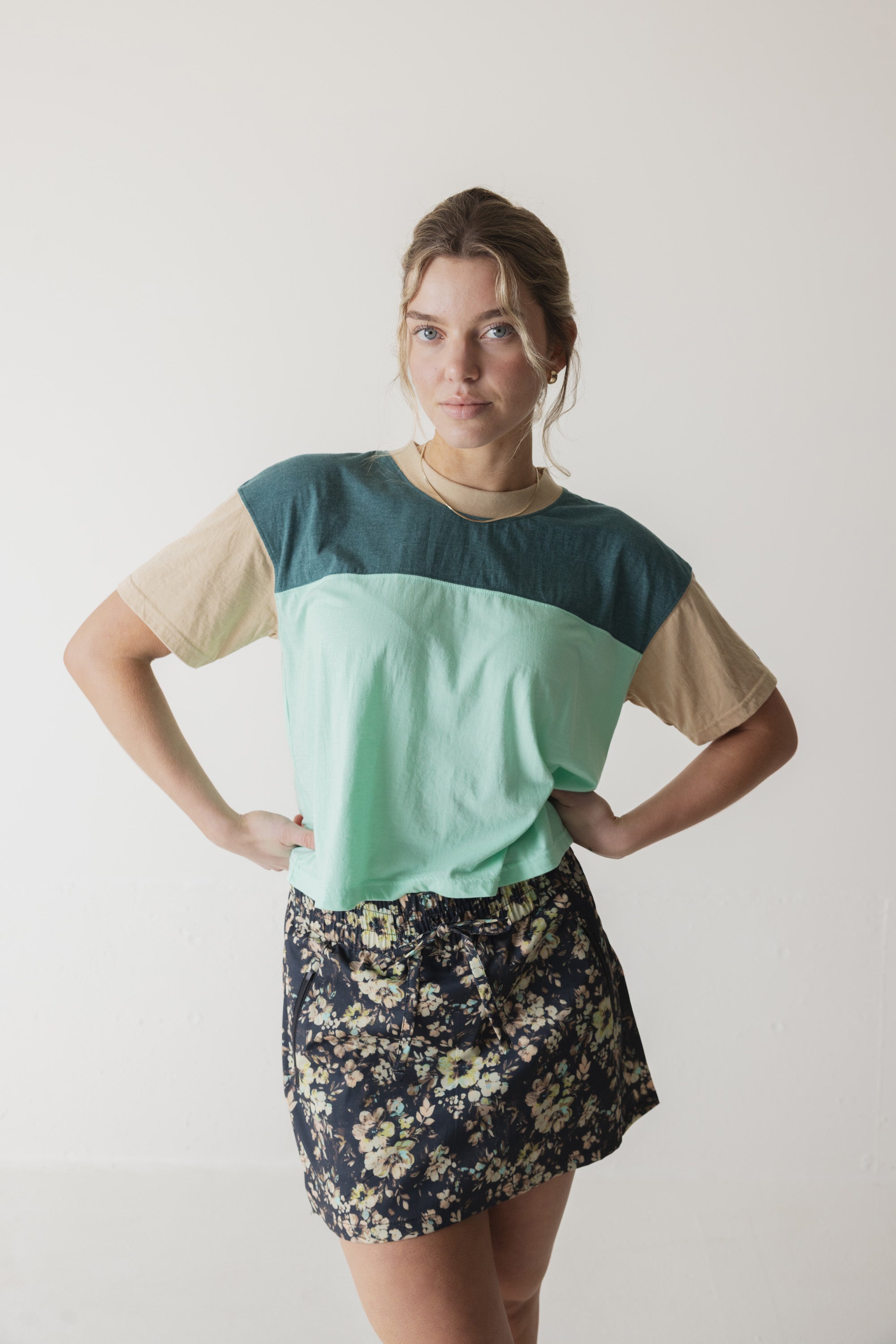 The Eevi shirt is designed for fun. It's an essential cropped t-shirt with rowdy color blocking. Super comfortable cotton/polyester blend. This shirt is 100% engineered for good times.