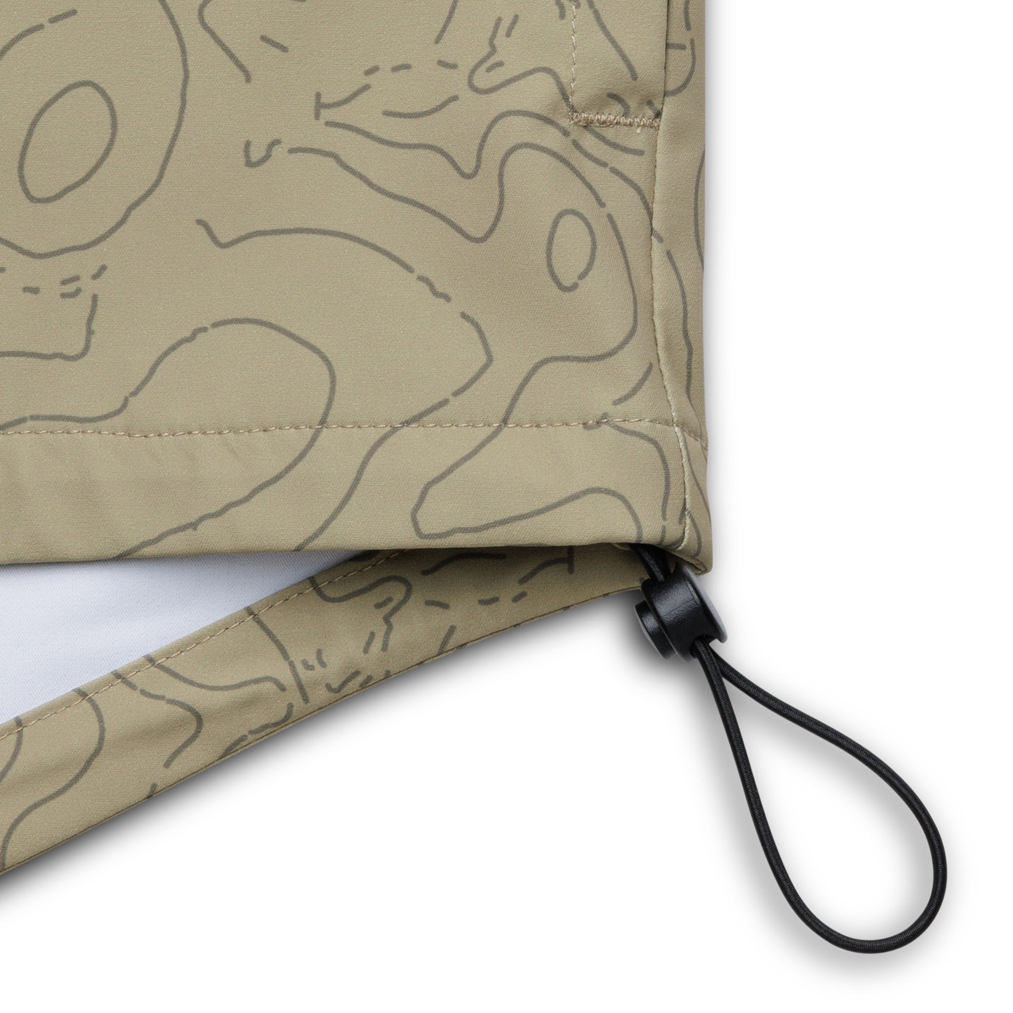 - Back drop tailed hem and bungee cord with cinch lock