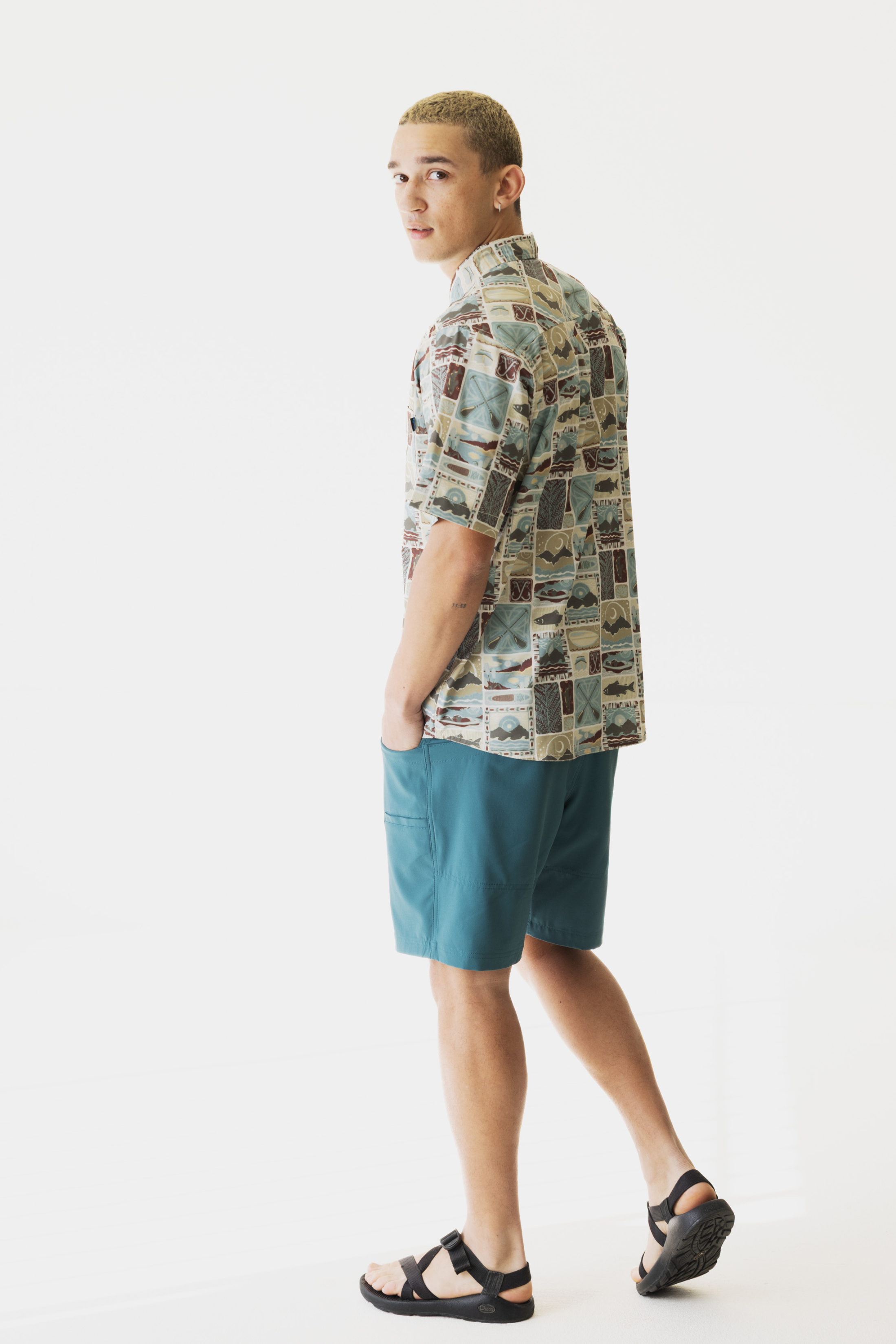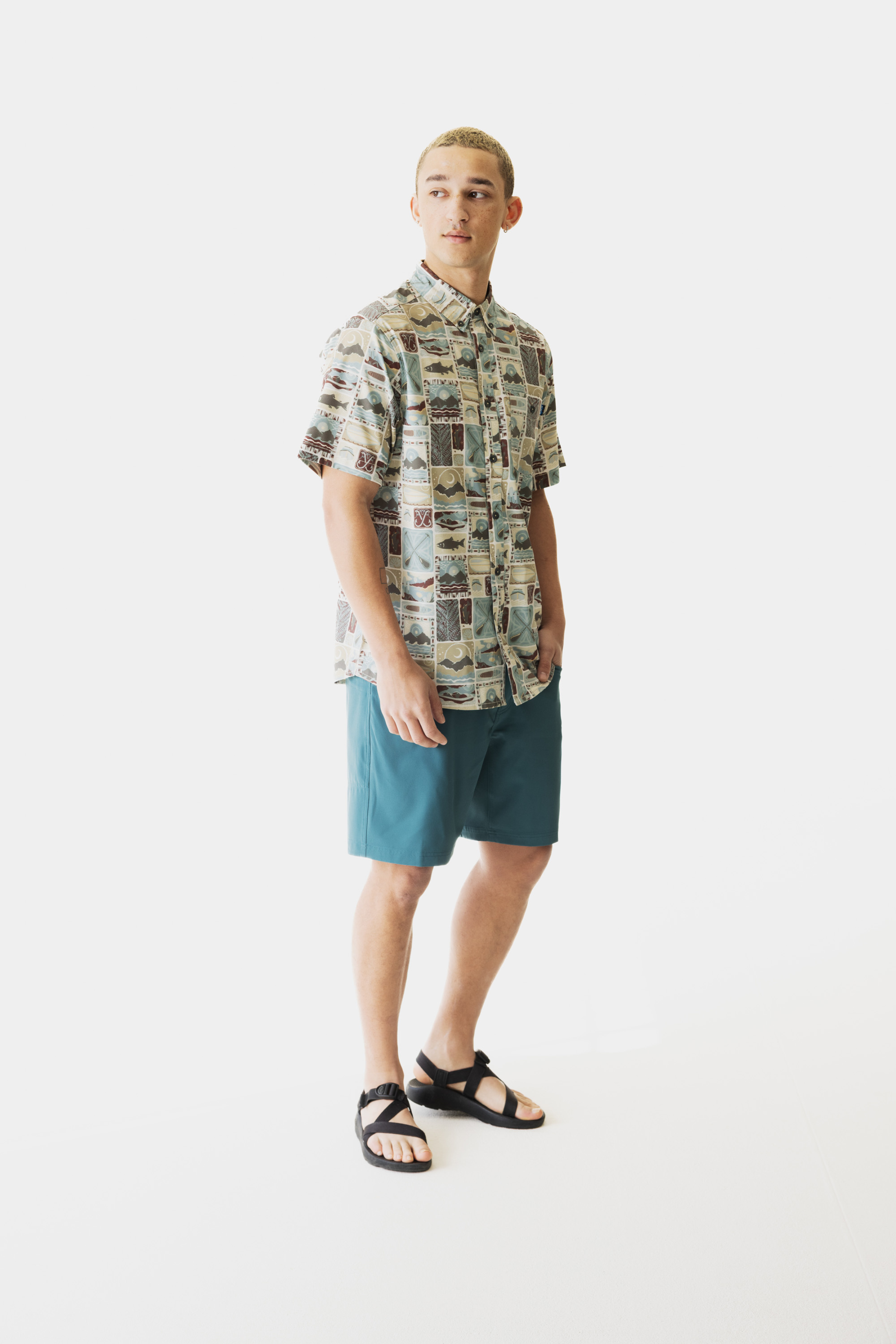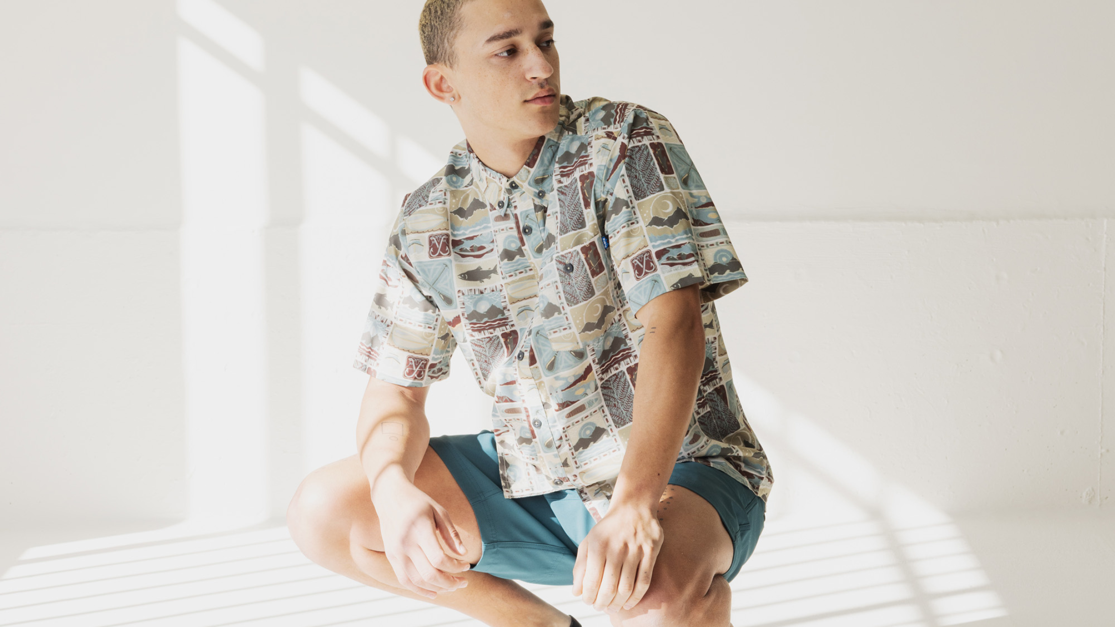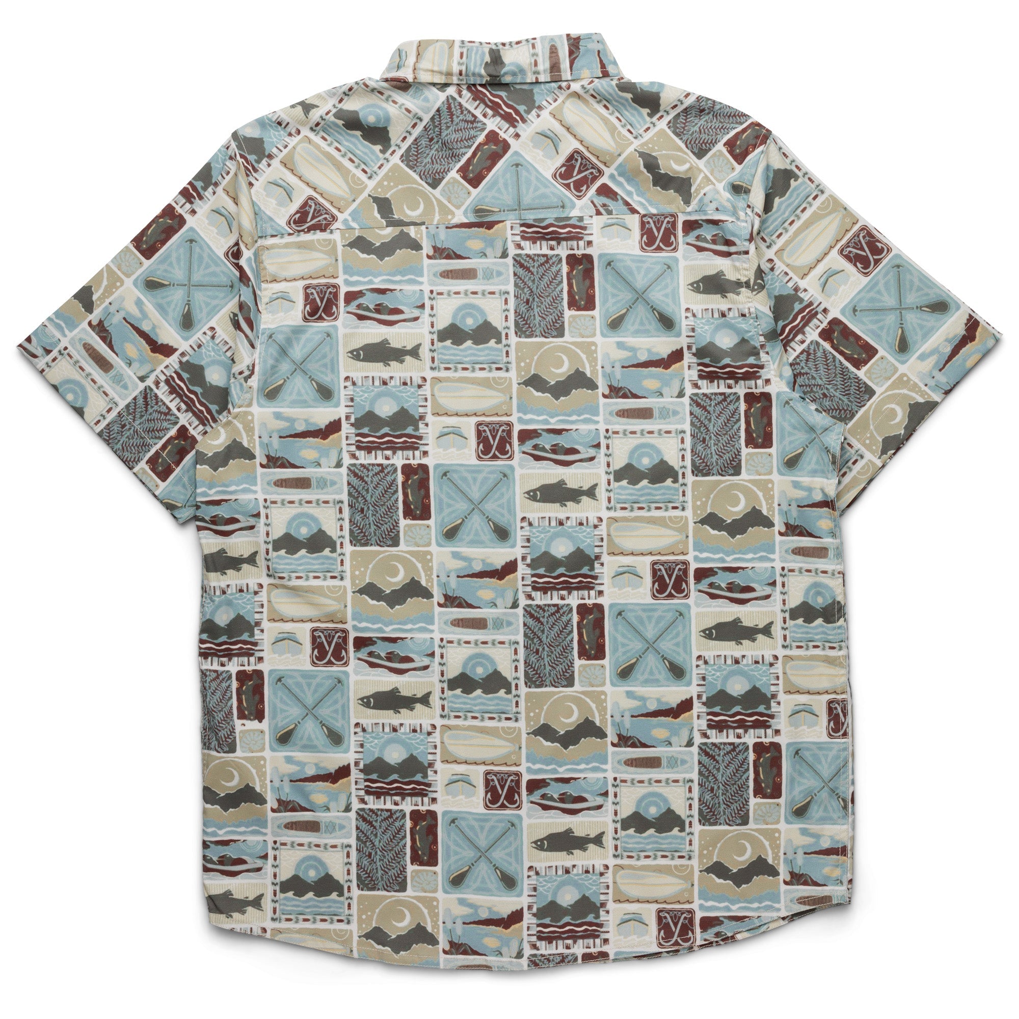 KAVU was born on the water, so it's only natural we build sweet garb for H2O infused shindigs. The River Wrangler can take you from the river, with its UV protection and wicking properties, and to the pub, with plenty of stretch for unrestricted 12oz. curls. This 3oz certified recycled poly/spandex button has a vibrant digital print in two colorways showing some of our favorite gill-bearing buddies.
